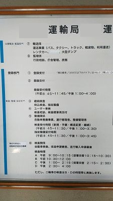 運輸支局(陸運局)に到着しました。これから住所変更に伴ったナンバープレートの交換をします。
