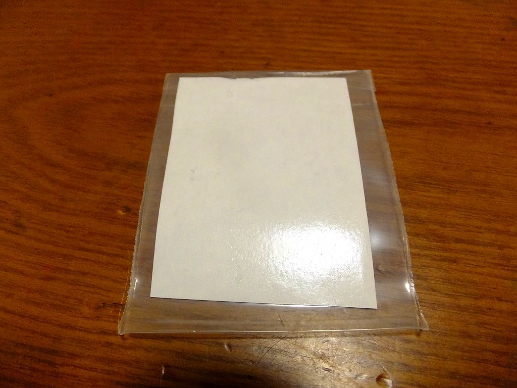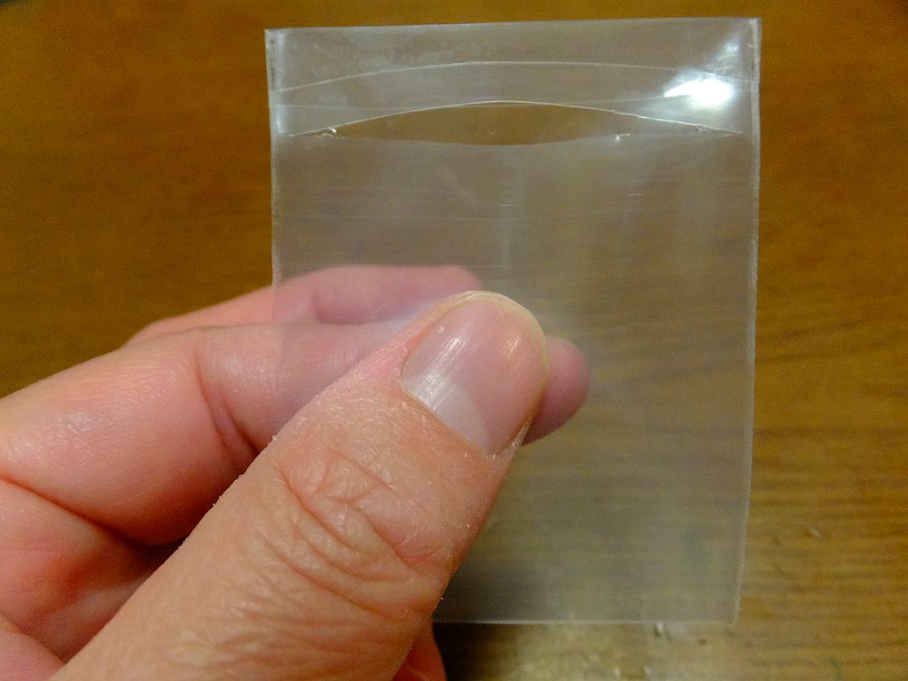 チャック袋の切り目を入れていない側に貼ります。幅広のタイプならばこんな感じです。