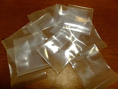 すべて貼り付け終われば、今度は、セロファンテープで隣同士のチャック袋をくっつけます。