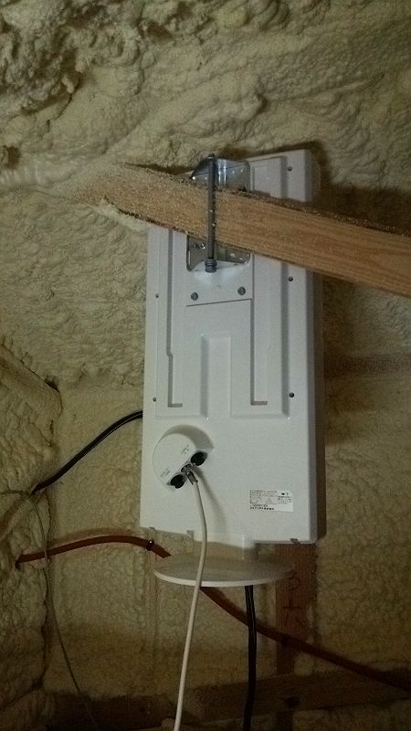 今回は、屋根裏に電源コンセントがあるので、アンテナの電源供給ユニットも屋根裏に設置します。