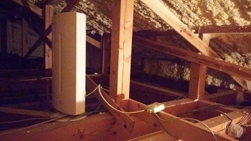 やはり、屋根裏だと電波の強度が落ちるので、あまり感度が良くない場合は、潔く屋根の上につけるほうが良いです。
