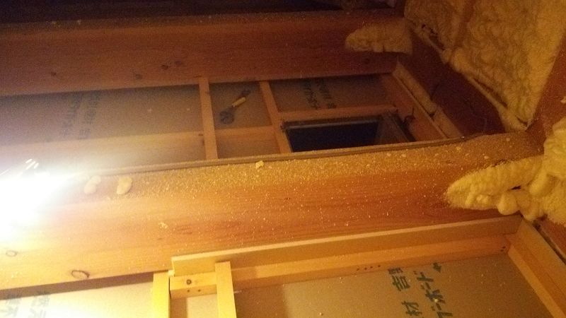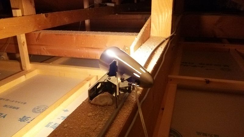 屋根裏に電源コンセントがあれば、作業時に明かりがとれるので、便利です。